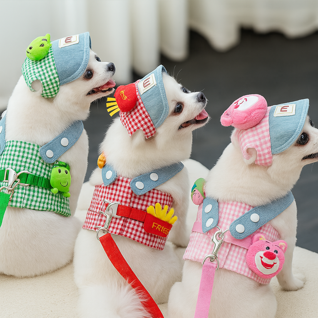 Cartoon Dog Harness, Leash & Hat Set – Cute, Safe & Sun‑Smart