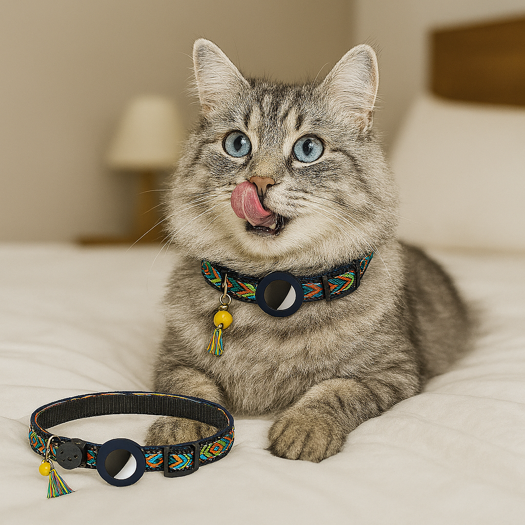 A lightweight, durable nylon collar designed especially for puppies and cats, featuring a discreet AirTag holder and a gentle bell. This accessory ensures safety and comfort while keeping track of your furry explorer—whether they’re snoozing in the garden or off on secret adventures.