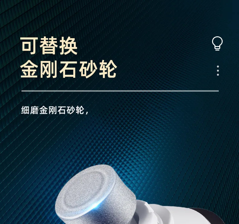 ⚙️ Adjustable speed and interchangeable grinding heads for custom comfort